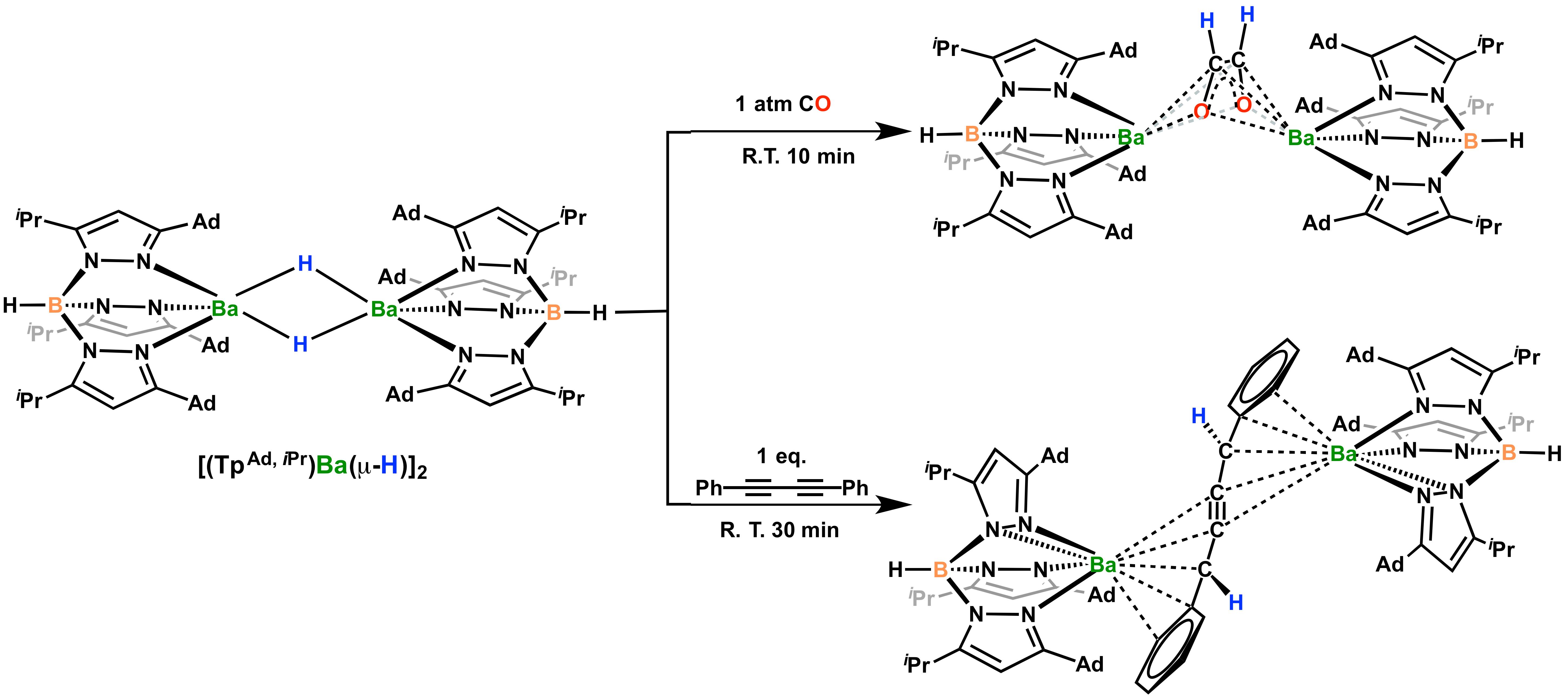 图 2. 三吡唑基硼金属钡氢化物[(TpAd,iPr)Ba(m-H)]2的反应性