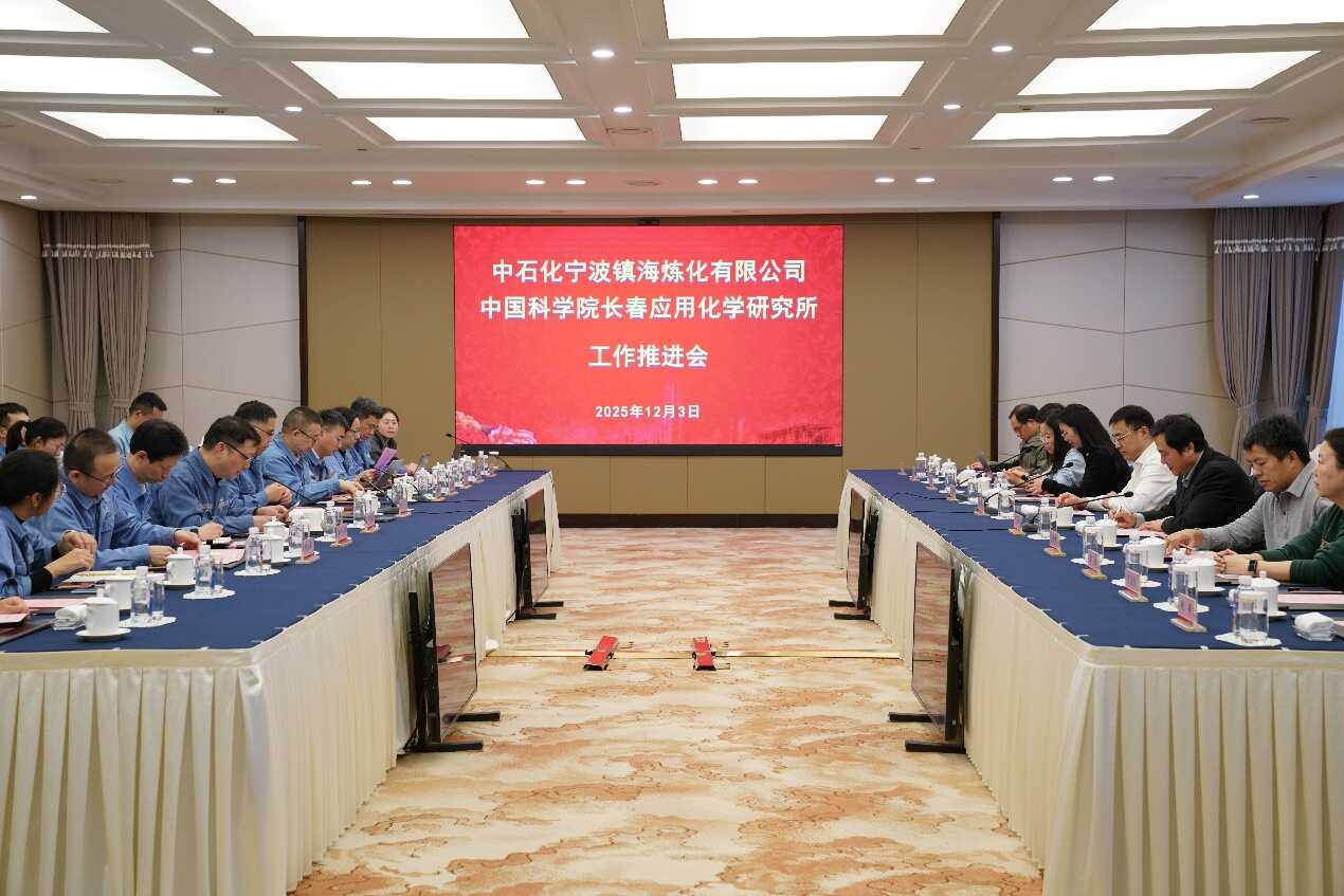 12月3日,中国科学院长春应用化学研究所副所长衣卓、高分子科学与技术全国重点实验室主任门永锋一行赴中石化宁波镇海炼化有限公司(简称“镇海炼化”),参加双方工作推进会。镇海炼化有限公司副总经理、总工程师洪波,新材料研究院常务副总经理、常务副院长魏真理等接待衣卓一行。