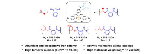 聚酯因含有易于水解的酯键结构,并具备理想的单体-聚合平衡,展现出可降解和化学回收的潜力,成为替代不可降解的聚烯烃的理想选择。将大宗烯烃原料环氧化后,与廉价的环状酸酐进行开环共聚,是价格经济、性能可调的聚酯合成方案之一。但这一方案目前受限于分子量较低的问题,所得聚酯材料性能有限,制约着其进一步应用。因此,通过对催化体系的理性设计来提高聚酯的分子量,继而提高聚酯的性能一直是学术界极为关注的研究热点之一。在众多催化体系中,席夫碱催化剂因活性高、结构可调、易于合成等优势备受关注。其中,铁元素毒性低,生物相容性好,完美契合可降解高分子绿色合成理念。然而,与传统席夫碱金属催化剂相比,席夫碱铁催化剂在开环共聚中仍面临催化活性与可控性的双重挑战。